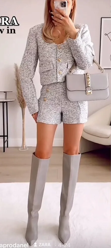 Zara New with tags Size M Zara short blazer with round neck, long sleeves and shoulders pads. Gold... Show more
