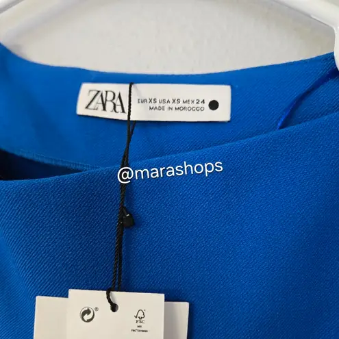 NEW WITH TAG. -back zip TAG: NWT Zara Mid-Blue Viscose Blend Asymmetric Top