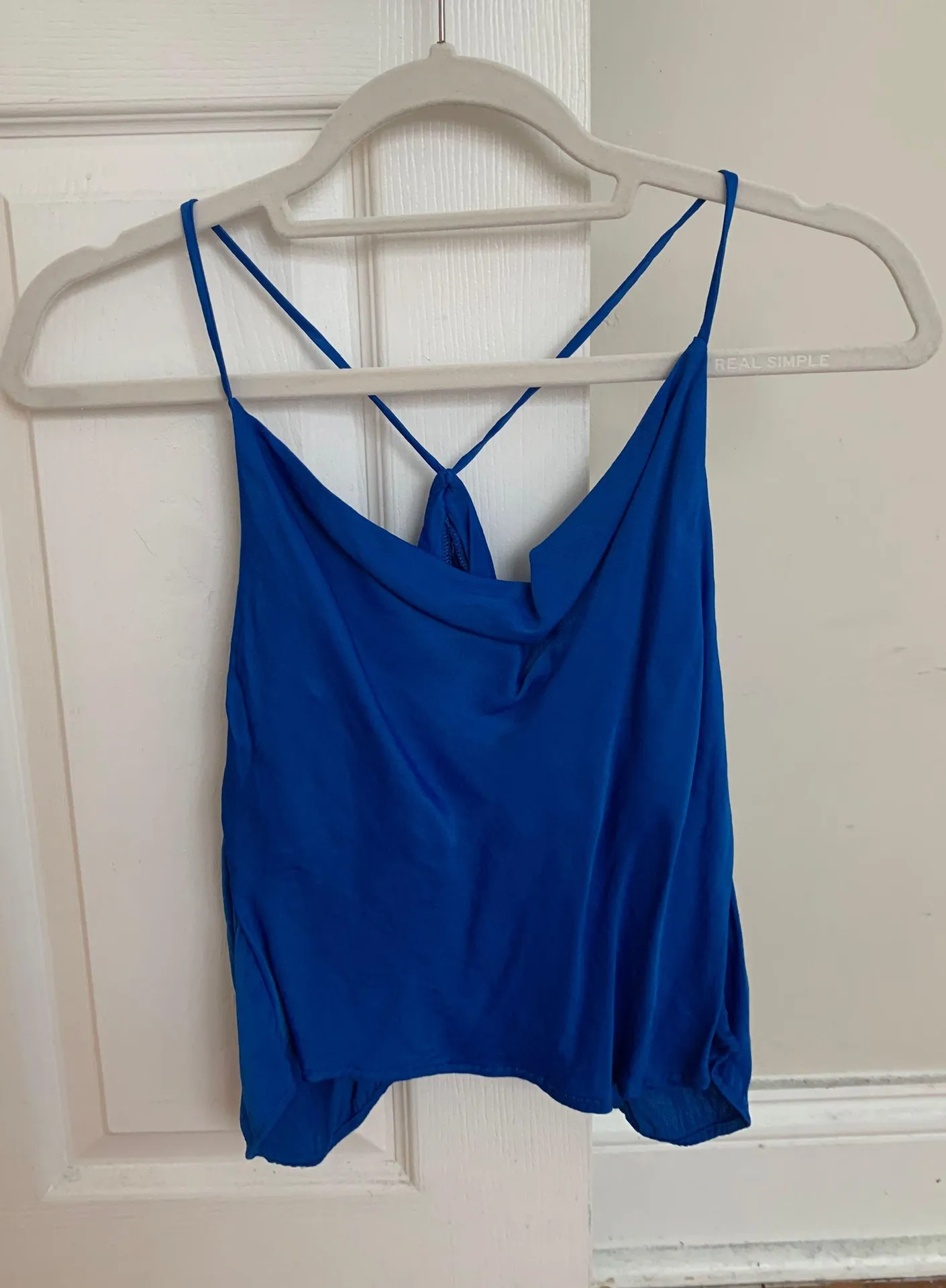 Worn once! Blue Zara satin cowl neck top with open back. Perfect for going out/summer