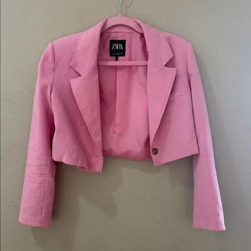 Stylish cropped blazer in blush pink. Perfect for a trendy look.