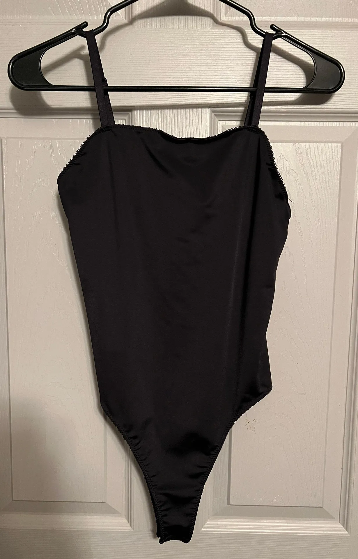 Black body suit Very flattering Adjustable straps Button closure