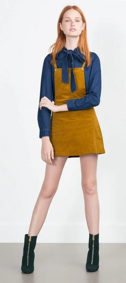 Zara Brown Mustard Yellow Corduroy Sleeveless Pinafore Square Neck A Line Velvet Velour Mini Overall... Show more