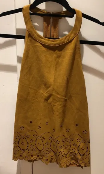 Zara Brown Halter Top Eyelet Detail Faux Suede Look Button Closure Size Small - $48 - From S