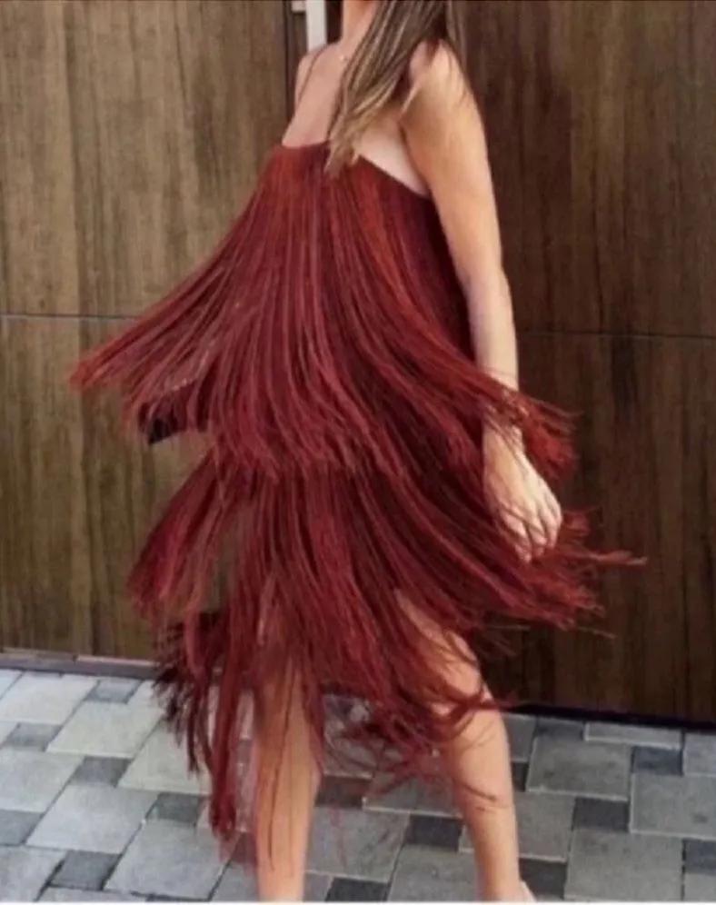 Zara Brown Fringe Sleeveless MIDI Dress. Pullover styling, Lined, Approx measurements Pit to Pit 18,... Show more