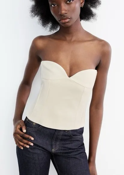 Zara bustier top strapless ecru oyster sweetheart white tuxedo - $28 - From Filo