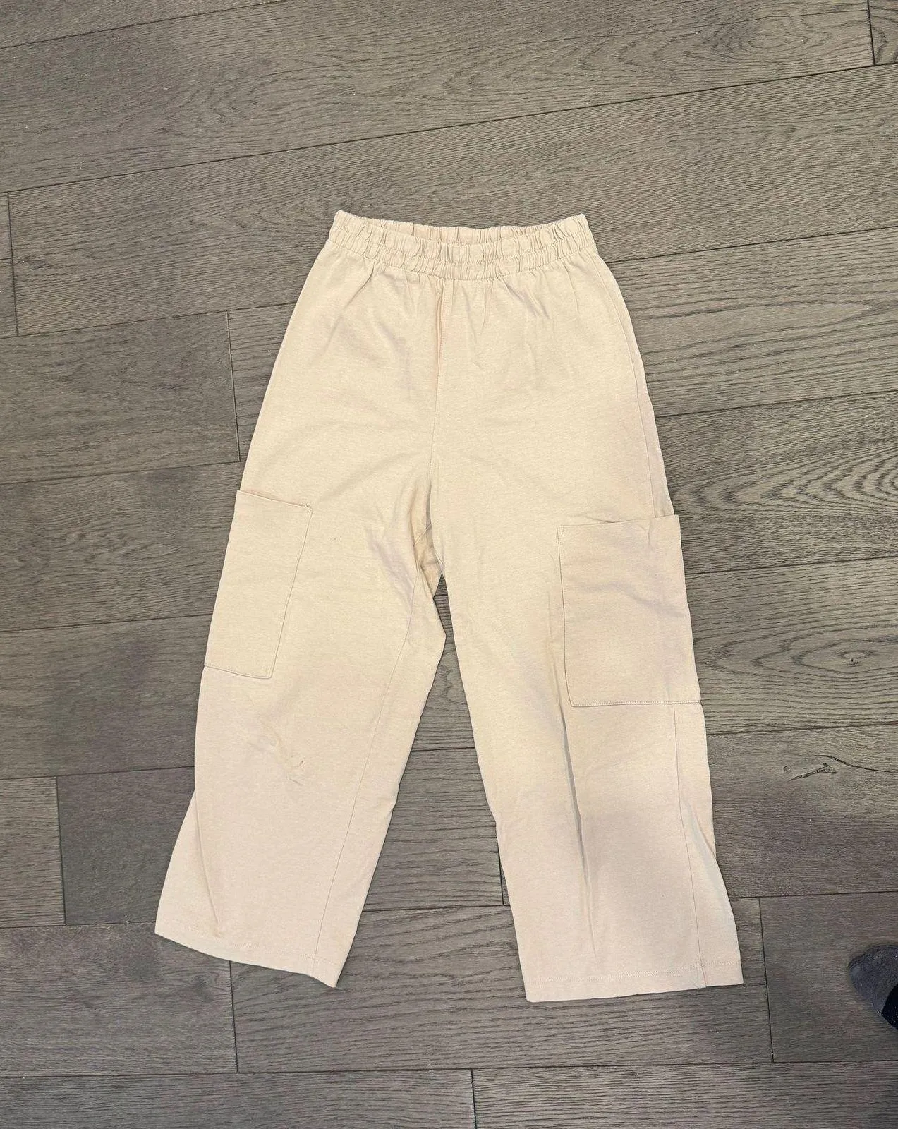 Good condition, tan, comfortable cargo pants with good stretch Size small 100% cotton
