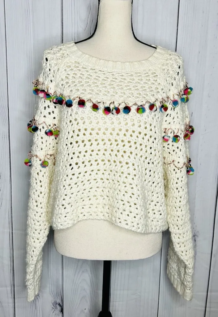 , 85% acrylic, 15% wool. This sweater is in excellent condition. Bust, lying flat: 24" Length, fr... Show more