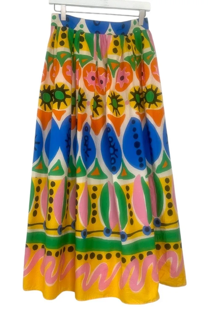 Stand out in this vibrant ZARA pleated maxi skirt, crafted from breathable cotton with a bold abstra... Show more