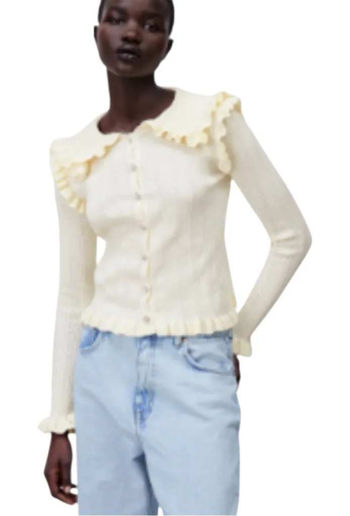 ZARA Cream Knitted Ruffled Cardigan Size M Cottagecore Whimsigoth Romantic Vintage-Inspired Brand:... Show more