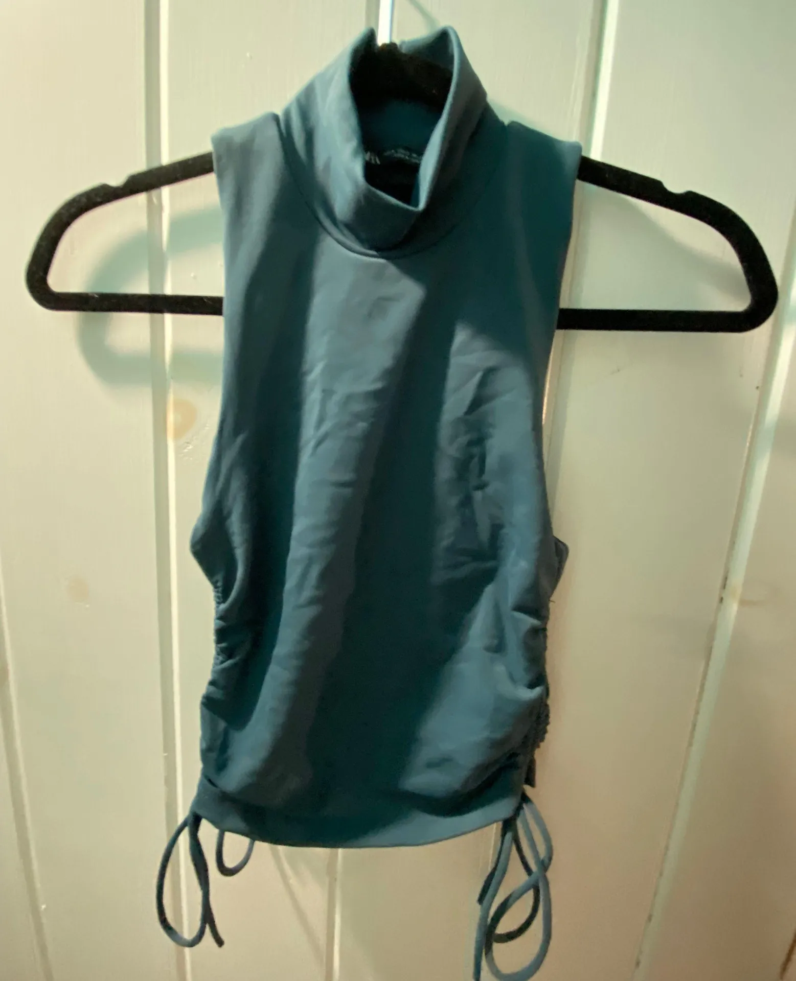 SO cute! Never worn, brand new with tags Spandex- type fabric cinched on side with a turtleneck col... Show more