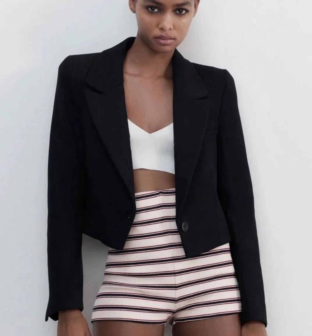 Black Zara cropped blazer. Boxy fit w shoulder pads, never worn. Fits me a bit too snug, I should ha... Show more