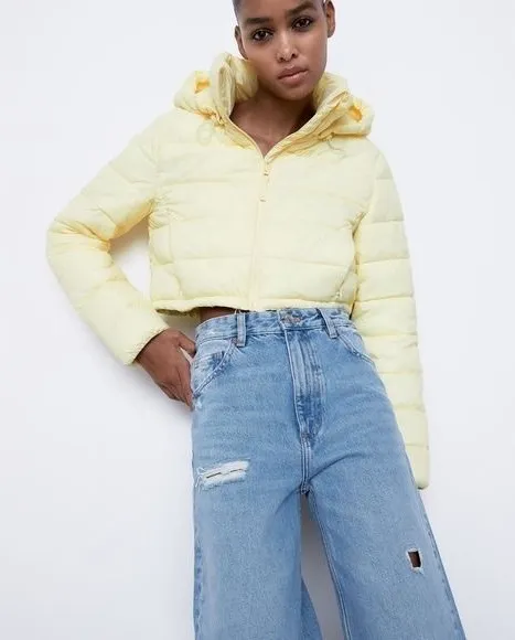 New without tags A cropped puffer jacket in pastel yellow. This jacket features a full zip front clo... Show more