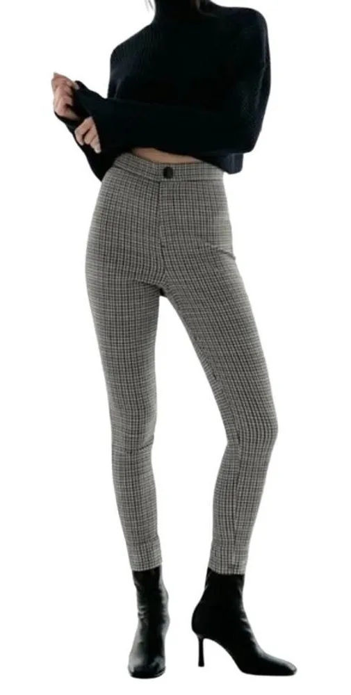 Zara Plaid Hi rise Textured Leggings Size M - High waisted leggings - Green/ivory - Front Zip and s... Show more