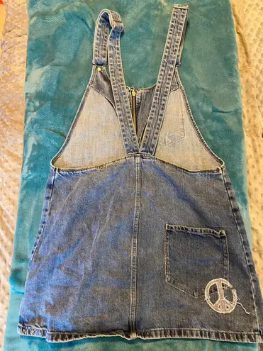 Worn once or twice. High quality denim. Straps are adjustable. Really cute embroidery.