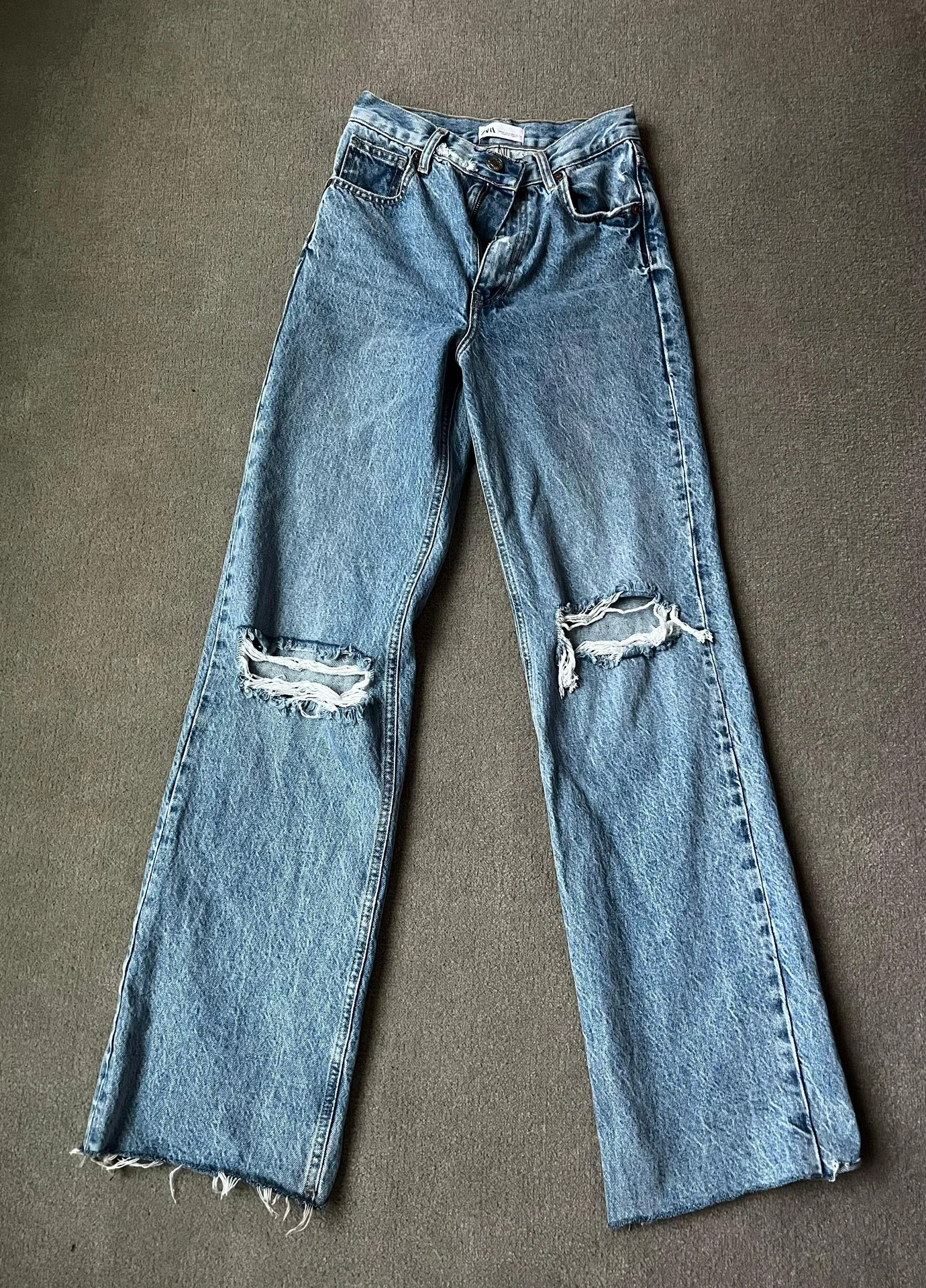 Zara Wide Leg Distressed Jeans Size 2 Perfect Condition