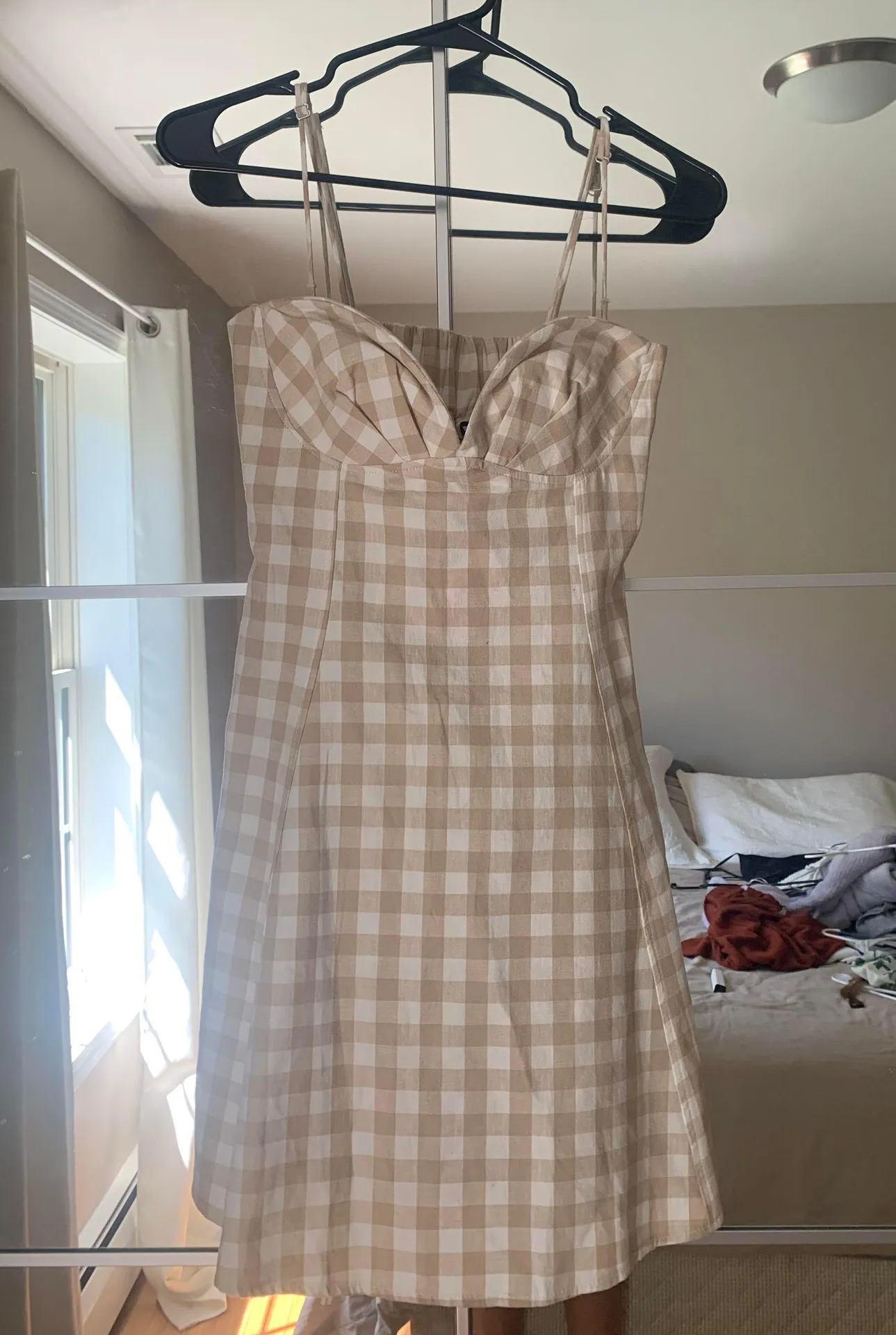 zipper on side of dress. Adjustable straps. Structured top.