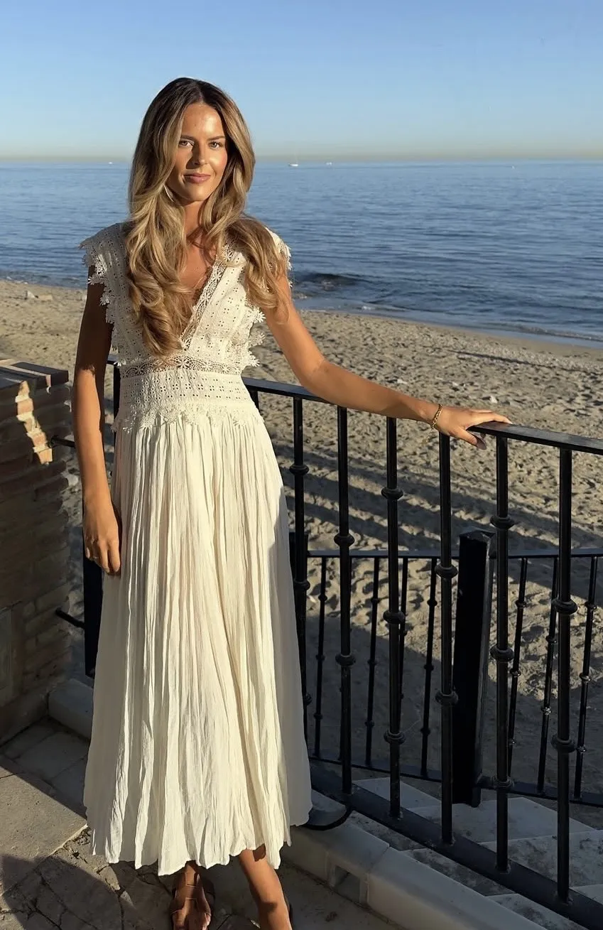 Zara Elegant Lace Trim Dress beads cream boho hippie summer beach Tan Size M - $120 (19% Off Retail) New With Tags - From Patricia
