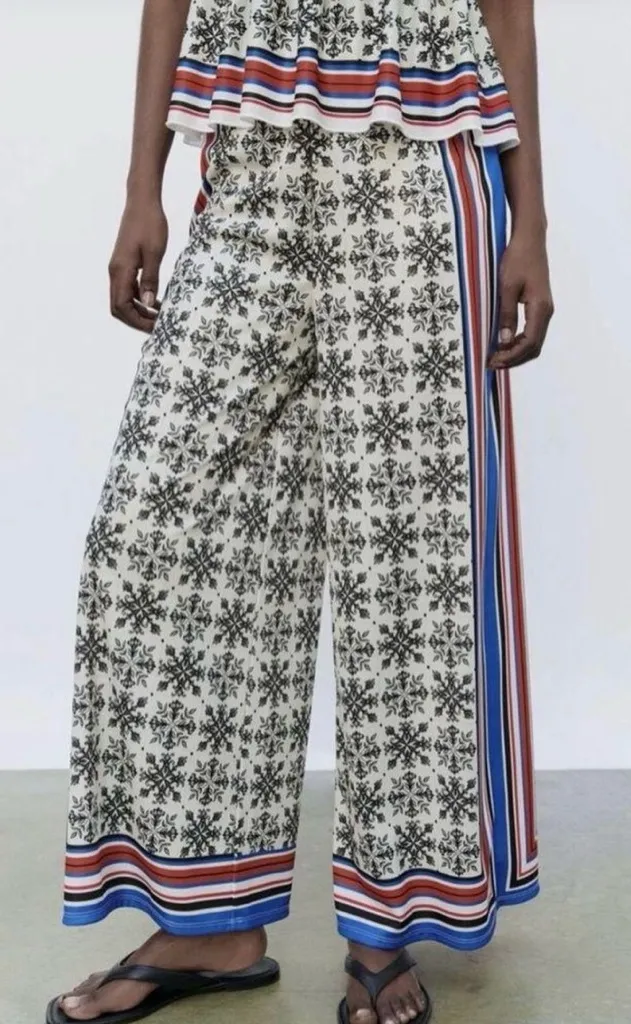 Zara Flowy Printed Wide Leg High Waisted Palazzo Trousers Size XS In Excellent Used Condition Plea... Show more