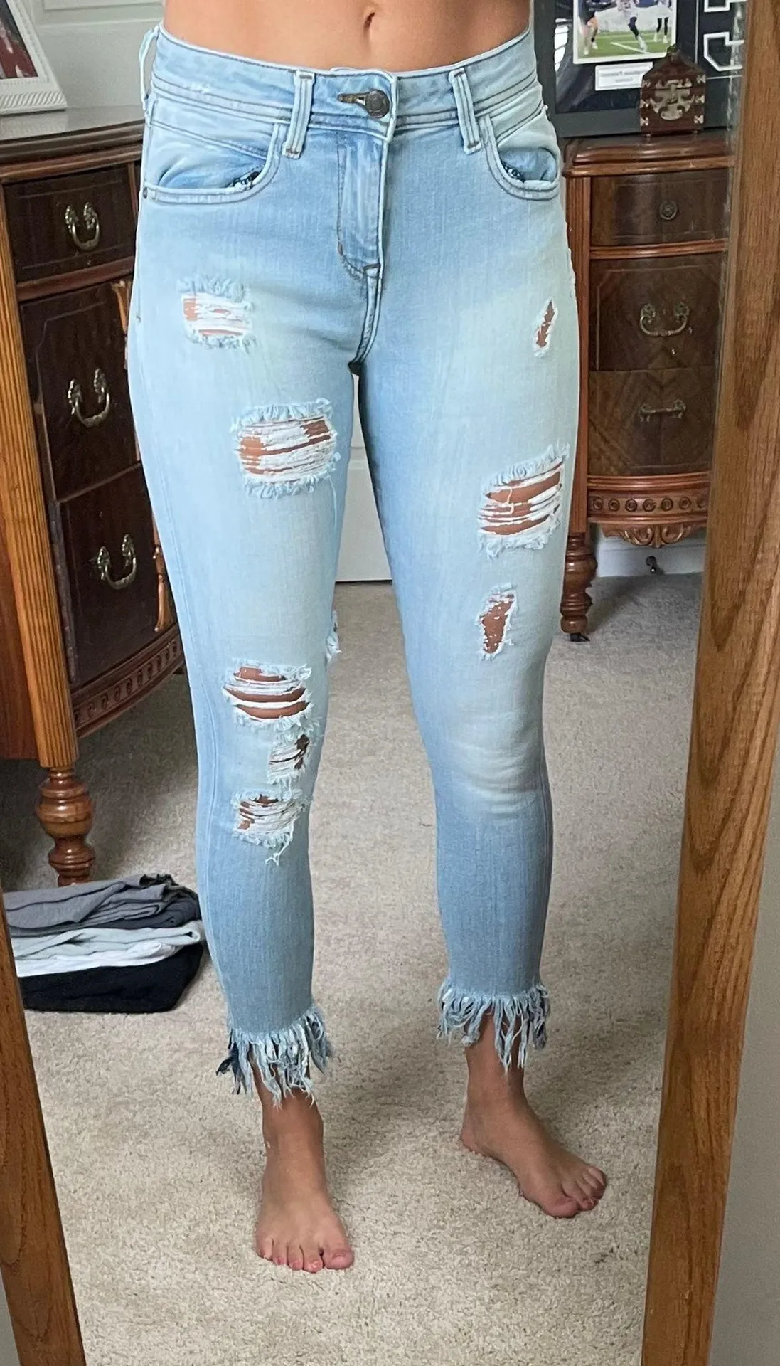 ZARA denim basics. Frayed bottom, distressed jeans. Amazing fit (a little too small for me in the ph... Show more