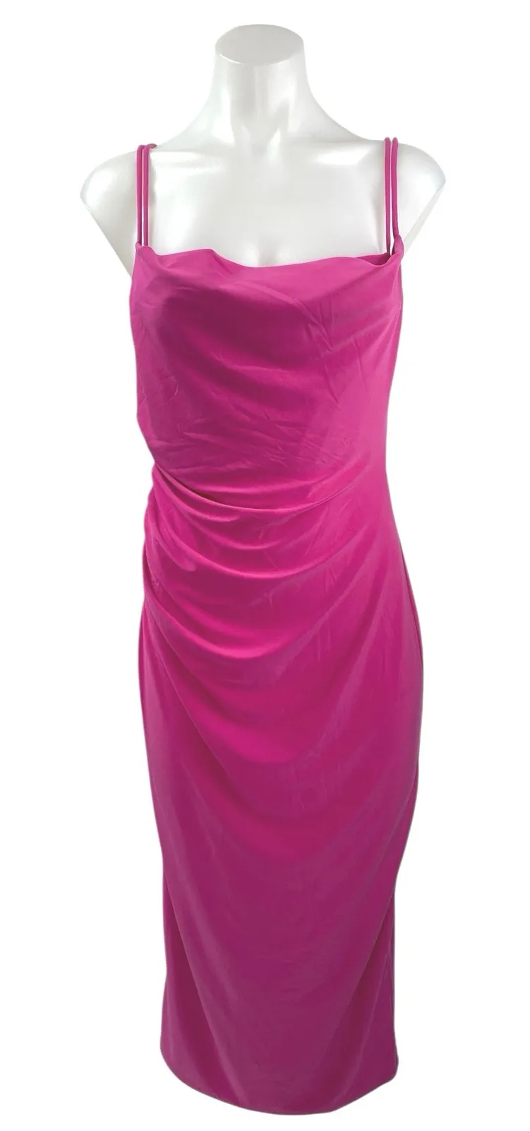 ZARA Fuchsia Ruched Sleeveless Cowl Neck Midi Tank Bodycon Slip Dress Size S Size: S Condition: Ver... Show more