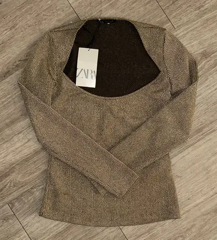 Stylish brown long sleeve top by ZARA. Features a scoop neckline and ribbed texture.