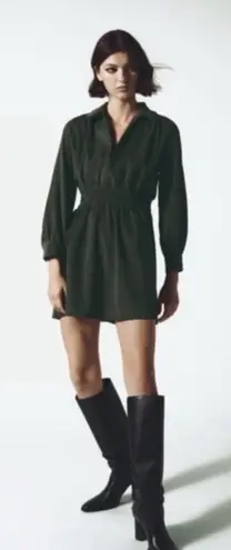 Zara corduroy dress with a collared V-neck and shirred waist, 100% polyester