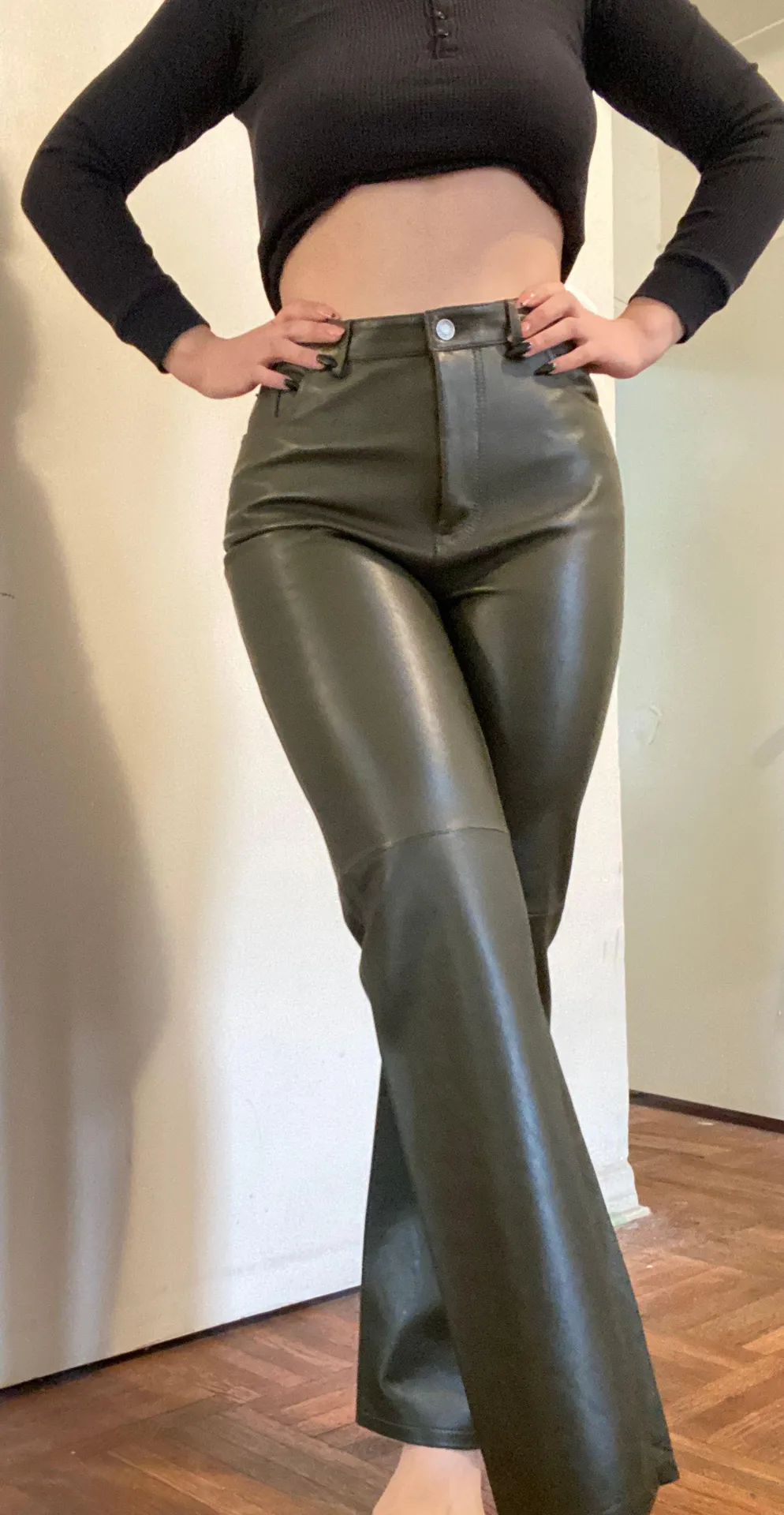 REAL LEATHER PANTS WITH TAGS NEVER WORN !!! Fits me big around waist it can be an easy fix if your i... Show more