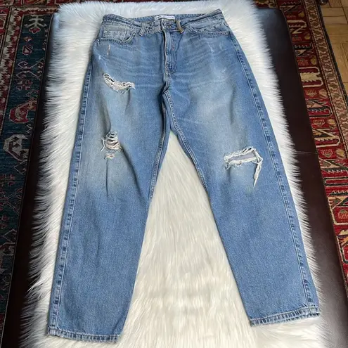 Distressed High Rise 90’s Zara Mom Jeans Faded Distressed with holes Zip front Button closure and f... Show more