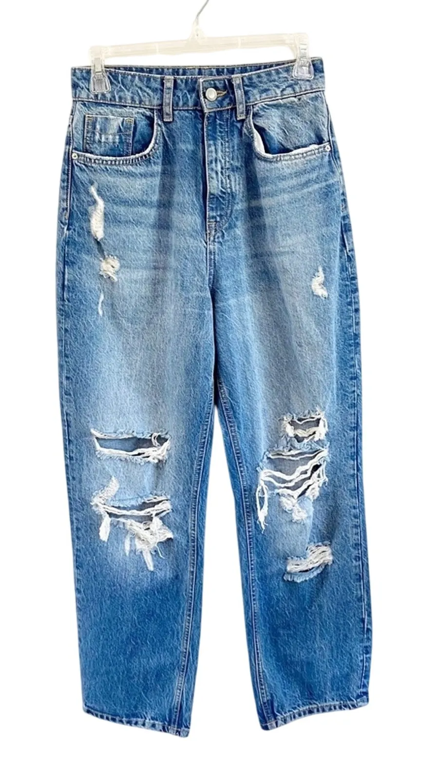 Super cute jeans made with 100% cotton. Rips throughout. Cropped with an inseam of 26.5 inches 📏M... Show more