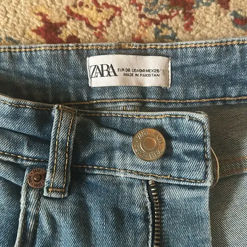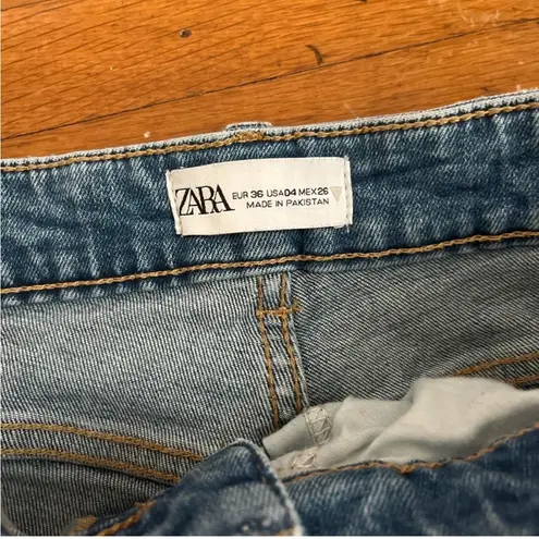 Zara denim jeans • size 4 • high waisted fit with slight flare at the bottom • gently worn & washed... Show more