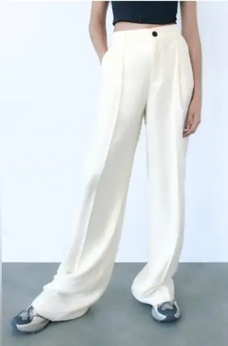 Zara High Waisted Wide Leg Cream Lyocell Trousers Pants. Cream, off white color. High waisted and wi... Show more