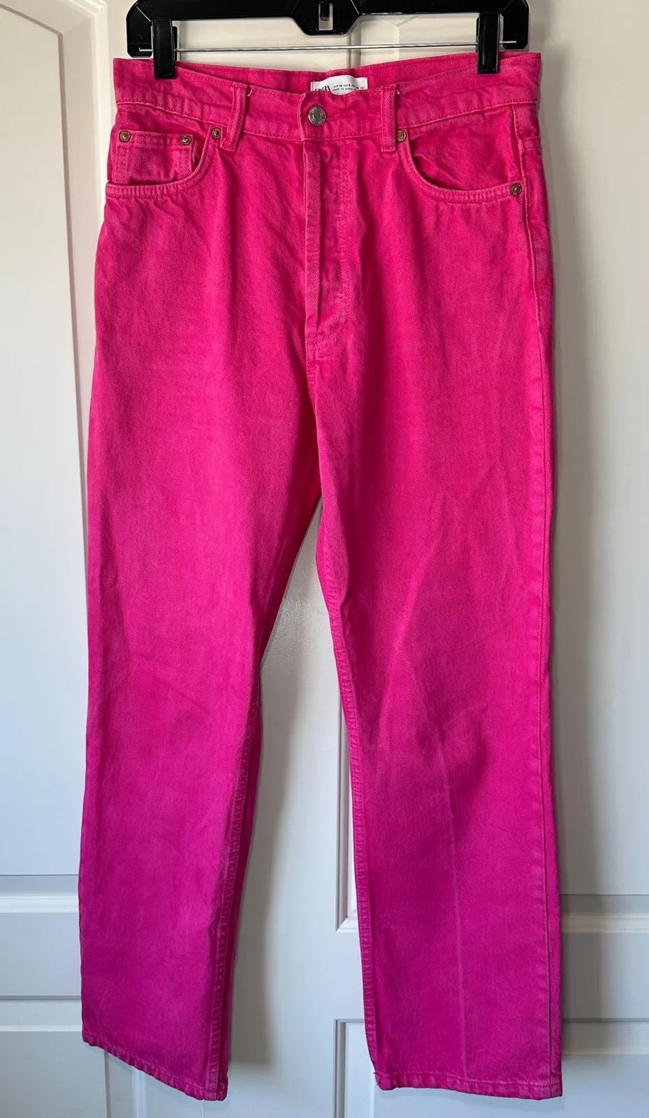 Zara Hot Pink High Waist Mom Jeans Straight Leg Button Fly Preppy Womens 6 Review photos for condit... Show more
