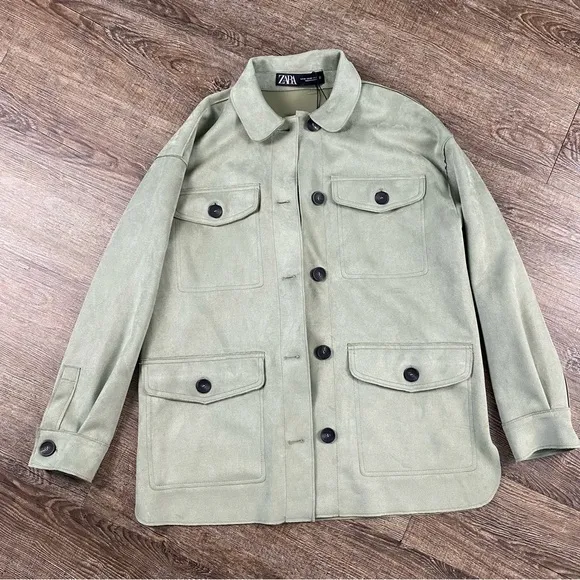 NEW Zara Jacket Women XS Green Oversized Velvet Button Front Pockets Lightweight Size: XS Women C... Show more