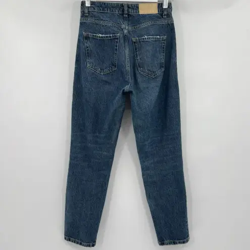 Zara Jeans Slim Straight Leg High Rise Waisted Dark Wash Blue Denim Stretch Full Length Casual Wome... Show more