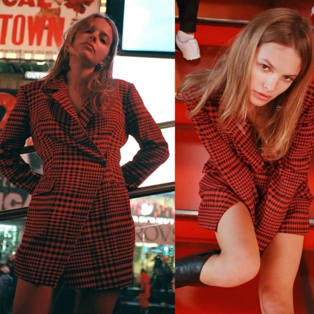 Zara Jumpsuit Dress / Blazer Romper Houndstooth Plaid Size XL Laying Flat / Approximately Arm... Show more