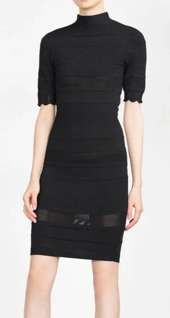 Zara Knit Black Mini Dress Bodycon/Sheath fit High mock neck Thick stretch fabric Partially expose... Show more