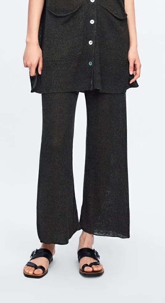 EUC Charcoal gray color Slightly sheer Elastic waist Medium Waist: 30” Inseam: 23”