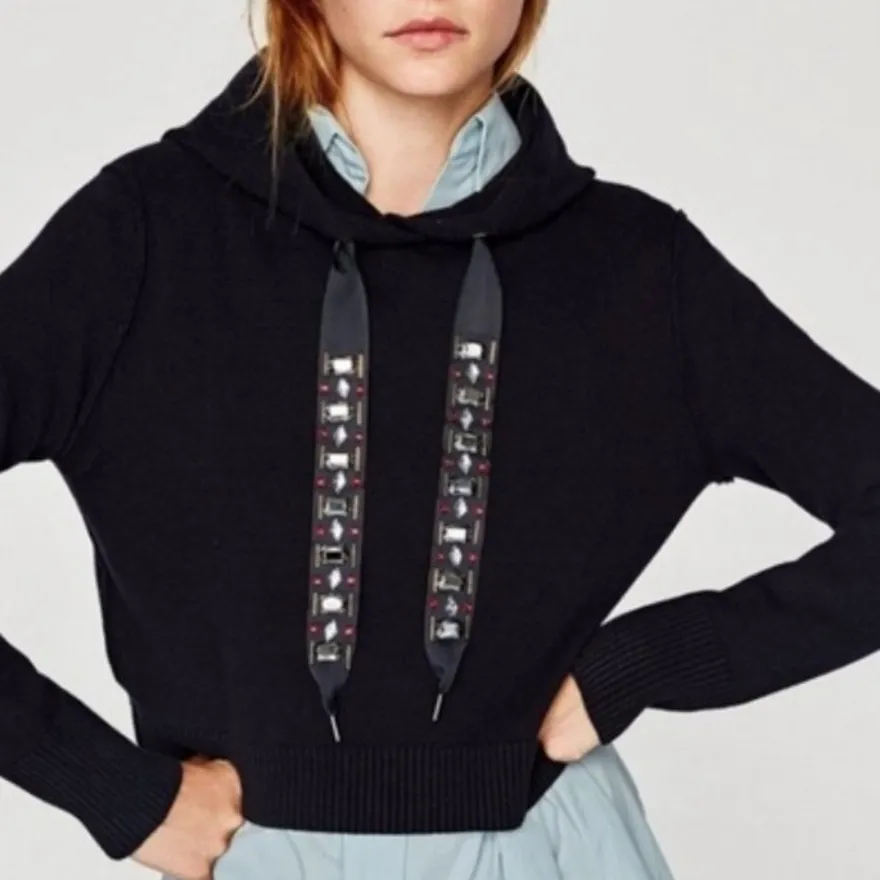 ZARA HOODIE SWEATER WITH JEWEL TIES *WORN 1x - EXCELLENT CONDITION (DRY CLEANED - WILL BE SHIPPED I... Show more