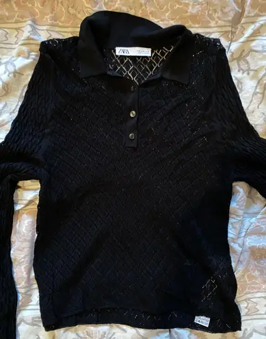 Zara long sleeve black lace top with collar and buttons. perfect layering piece. no flaws never worn... Show more