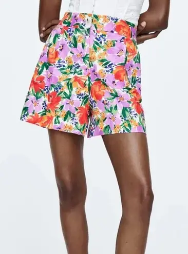 Zara Linen Blend High Waisted Floral Shorts Multicolor Size Medium Retails for $48 High Waisted Fron... Show more