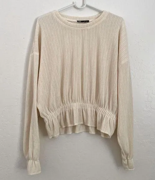 Zara cream colored long sleeve blouse! Soft with subtle ribbing details, perfect for fall and winter... Show more