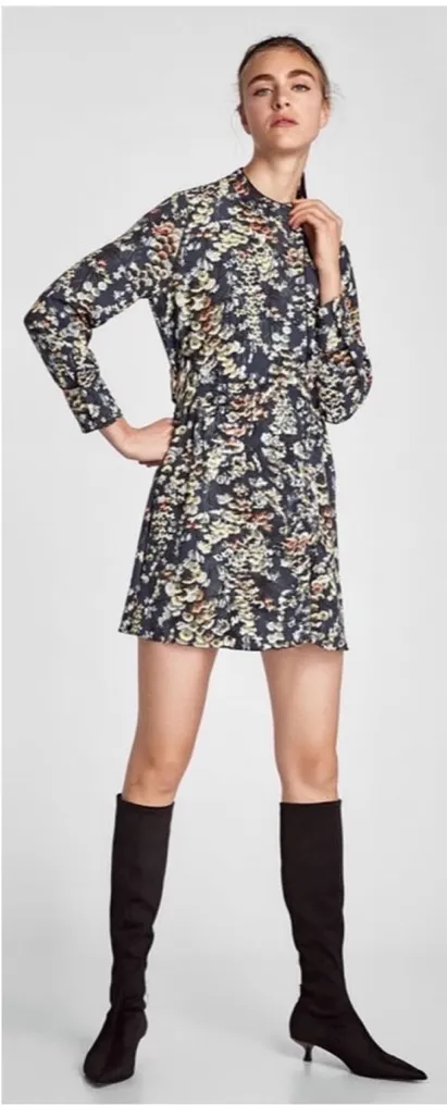 This stunning Zara dress features a vintage-inspired floral print in soft ivory, sage, and rust tone... Show more