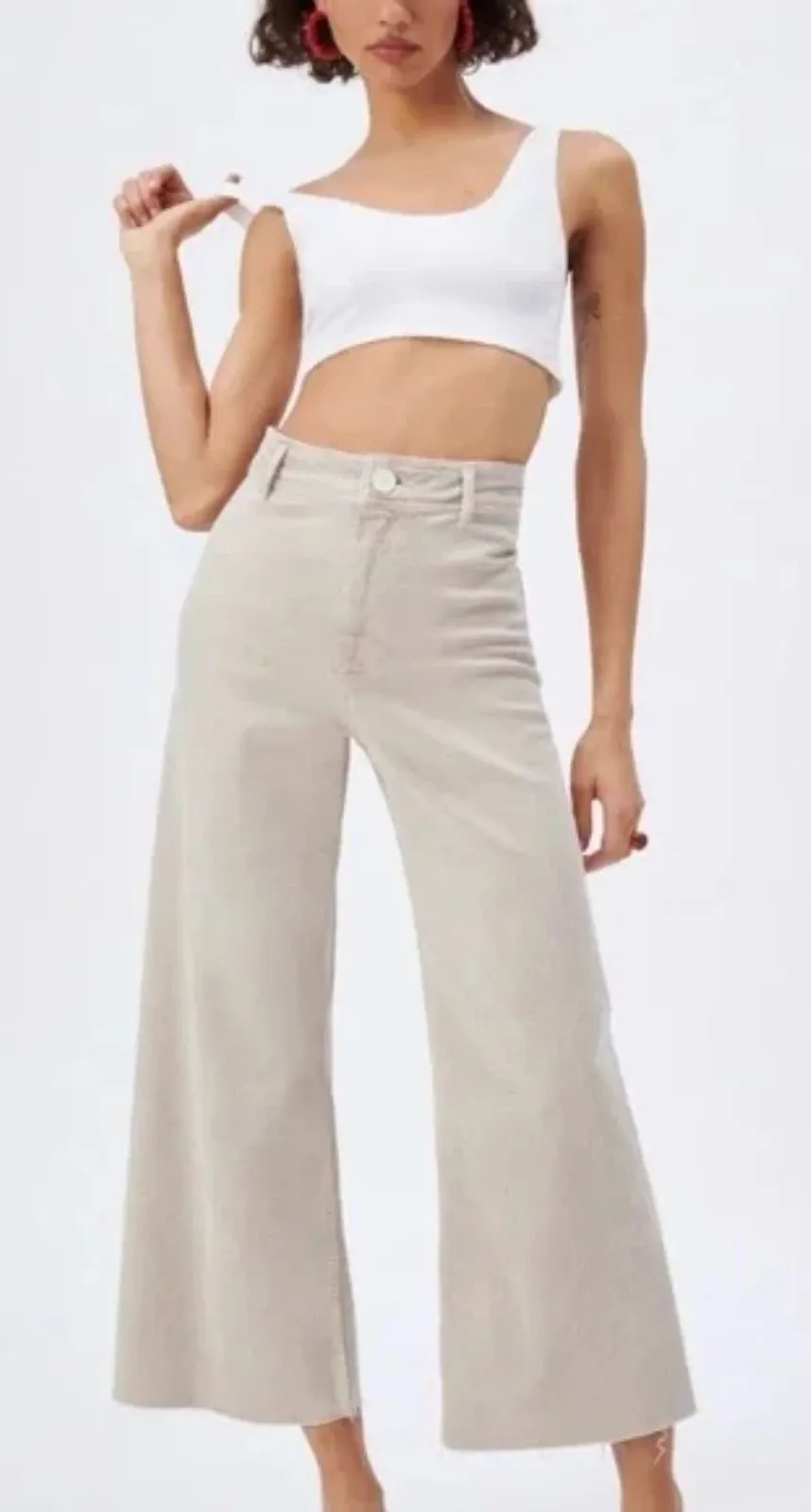 Zara Marine Jean in stone grey with frayed hem. Straight and wide leg pant. Comfy soft denim and str... Show more