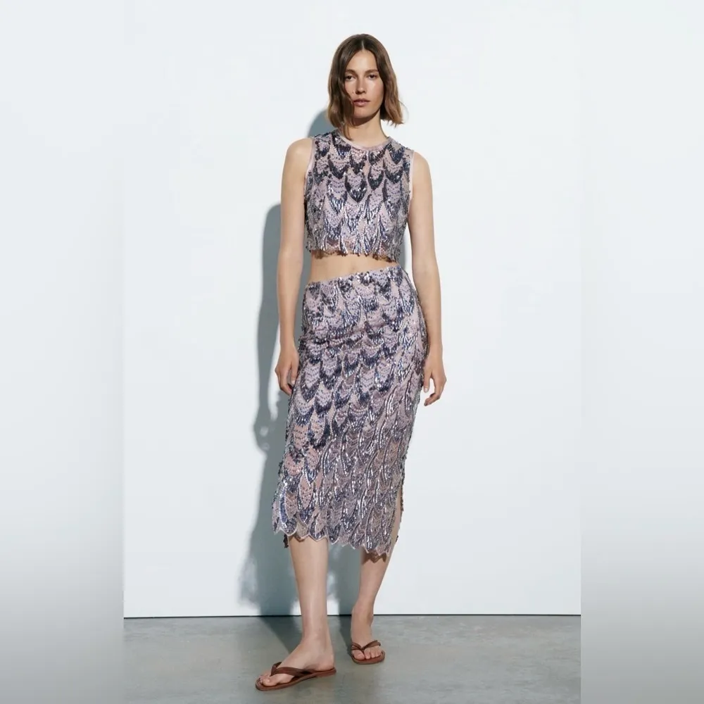 Zara New with tags Size Small Color: Multicolored Beautiful Metallic Multicolored Luxury Sequin Hi... Show more