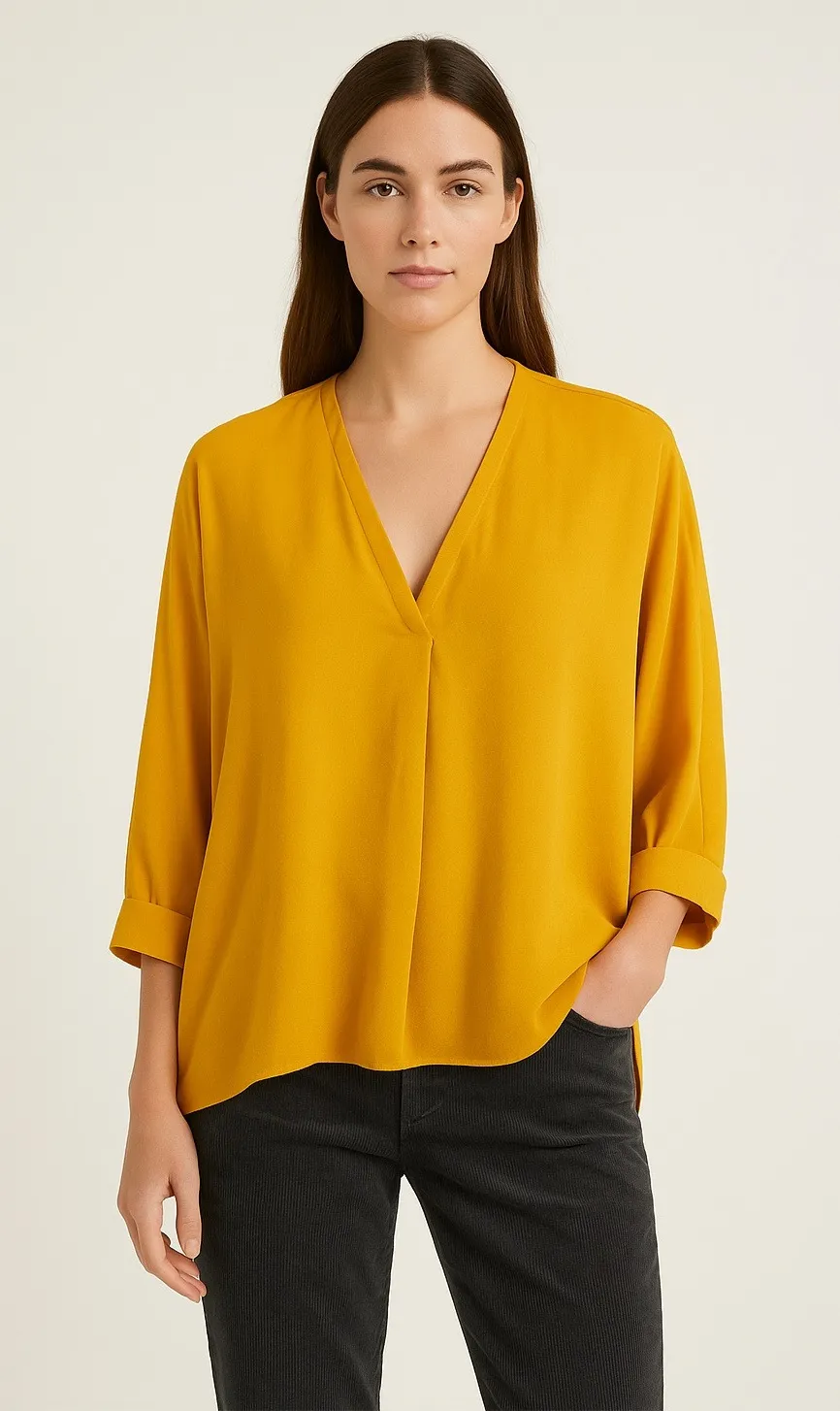 Measurements: • Pit-Pit: 26 in • Length: 25 in Color: Yellow, Mustard Yellow Type: Blouse Departmen... Show more