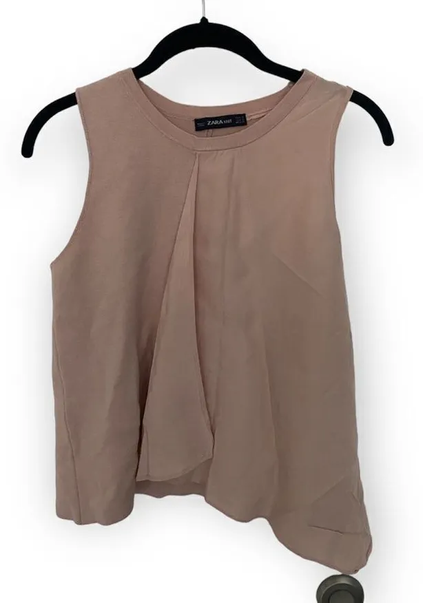 Zara Neutral Sleeveless Tank Top | Size S | Draped Front & Ruffle Detail Elevate your basics with t... Show more