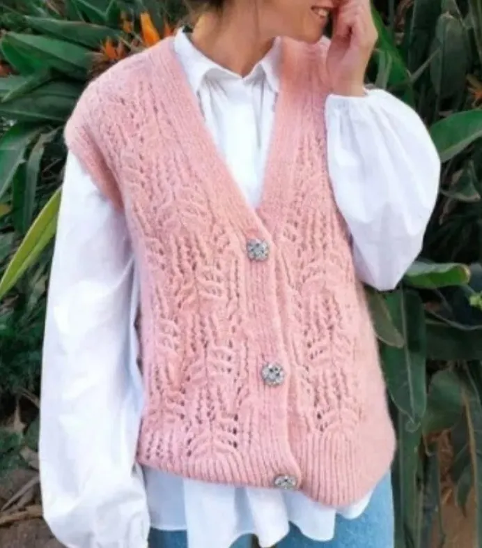 • Style: V-neck, sleeveless vest/ cardigan style.