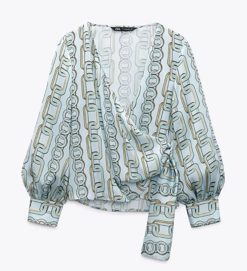 Zara New with tags Size Large Beautiful elegant chain print Long balloon sleeves shirt. Wrap style w... Show more