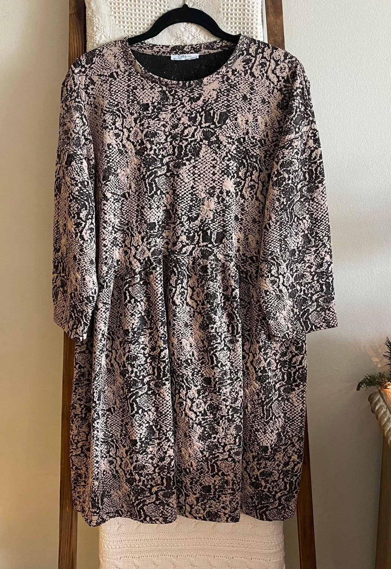 NWOT Zara black & tan textured lace print long sleeve scoop neck dress size XL. Brand new without ta... Show more