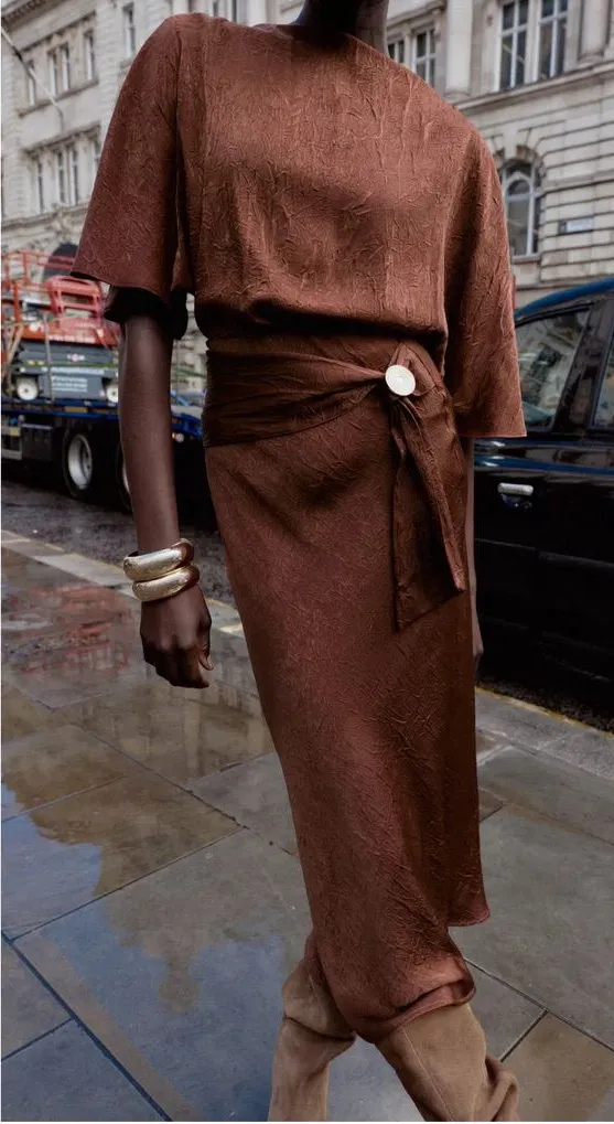 NWT 2 piece matching co-ord SET textured burnt orange rust top & midi skirt